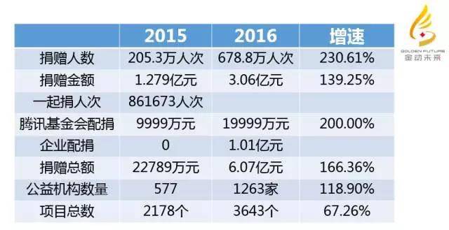 腾讯积极的“迭代”为今年的“99公益日”带来了各项指标的大幅增长,比之去年,捐赠人数增加了230%,筹资的资金增加了166%,惠及的公益组织也翻了一倍之多。